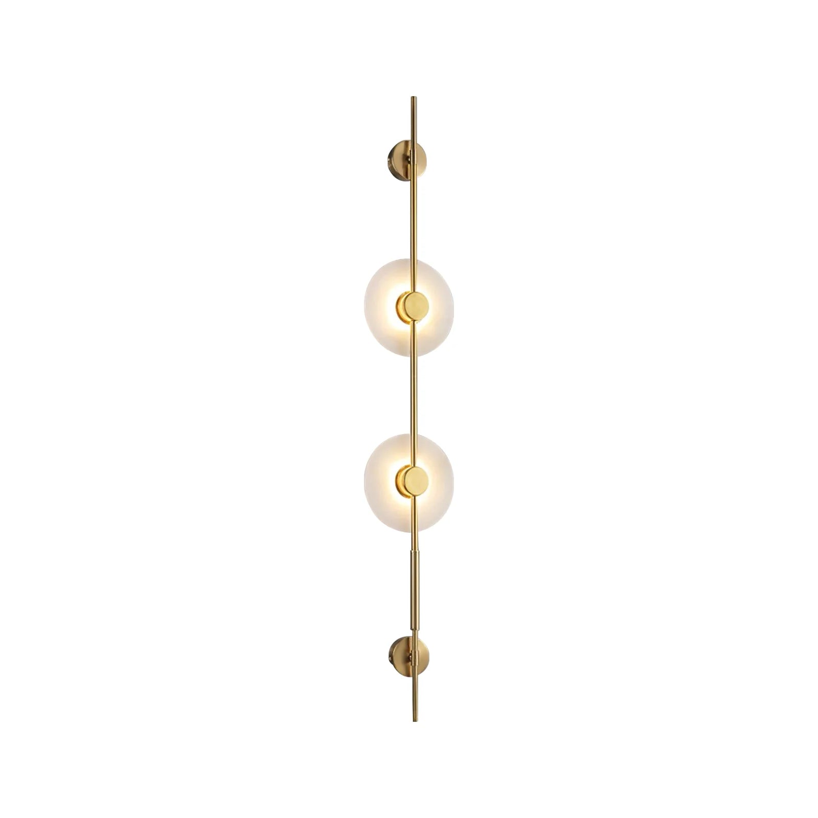 Experience the perfect blend of minimalist metalwork and soft, glowing alabaster with the Alabaster Vertical Wall Sconce. The sleek, vertical frame gracefully elevates elegant alabaster discs, each emanating a warm, inviting light. The natural veining and translucent quality of the alabaster adds a captivating visual texture, creating a stunning contrast with the clean lines of the metal structure.