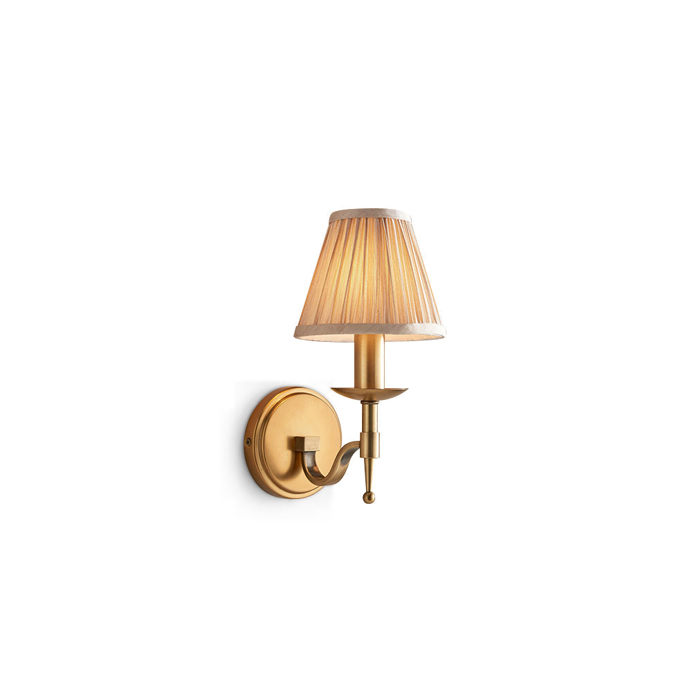 The Baylor Wall Light from Dekorfine features an elegant brass finish and a refined fabric shade. creating a sophisticated ambiance for any room. Its vintage-inspired design. with a curved brass arm and pleated lampshade. adds a touch of timeless charm while providing soft. warm lighting. Perfect for bedside areas. hallways. or living spaces. this sconce combines both function and style. The Baylor Wall Light exemplifies Dekorfine's commitment to blending classic design with modern aesthetics. making it a versatile addition to various interior themes