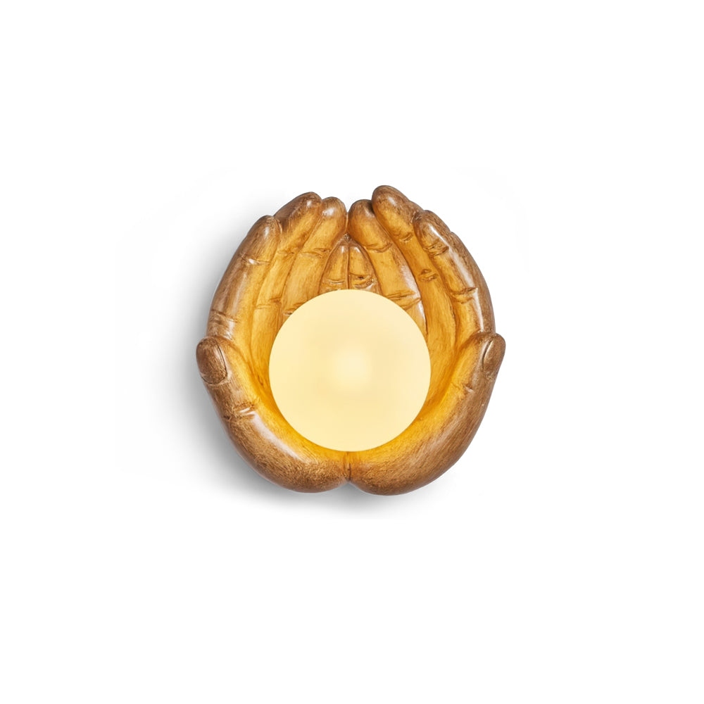 The Holding Hands Wall Lamp from Dekorfine is a captivating blend of artistry and functionality. Featuring intricately crafted hands cradling a glowing orb. this unique design symbolizes warmth and care. casting a soft and inviting light. Perfect for adding a touch of charm and character to any space. it serves as both a statement piece and a functional light source.