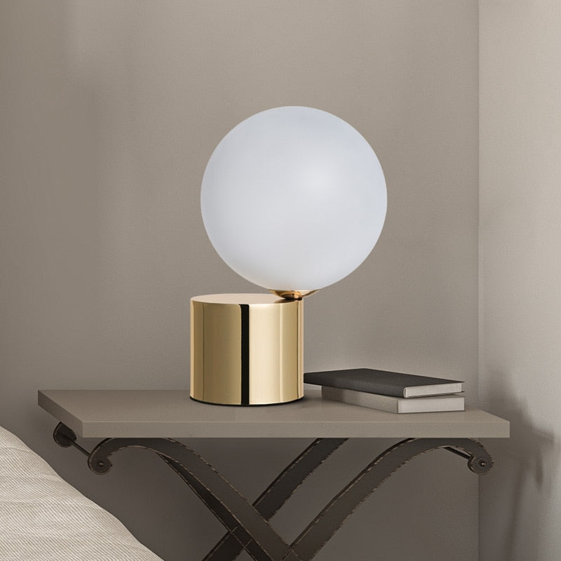 The KIMBERLEY Table Lamp is a perfect combination of design, craftsmanship, and function. Its LED glass sphere offers a low glare with comfortable lighting, pushing past traditional designs. It's a must-have for any modern space, whether it's used for reading or as a statement piece.