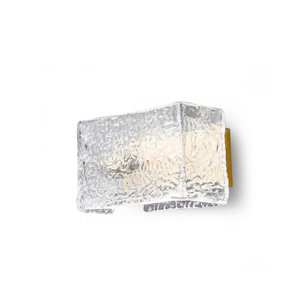 This Lunea Wall Lamp has a modern style. with exquisite geometric brass frame and water ripple glass lampshade. This modern work is firmly mounted on the wall through a matching geometric brass back plate. Whether lit or not. it will add minimalism and modernity to your space.