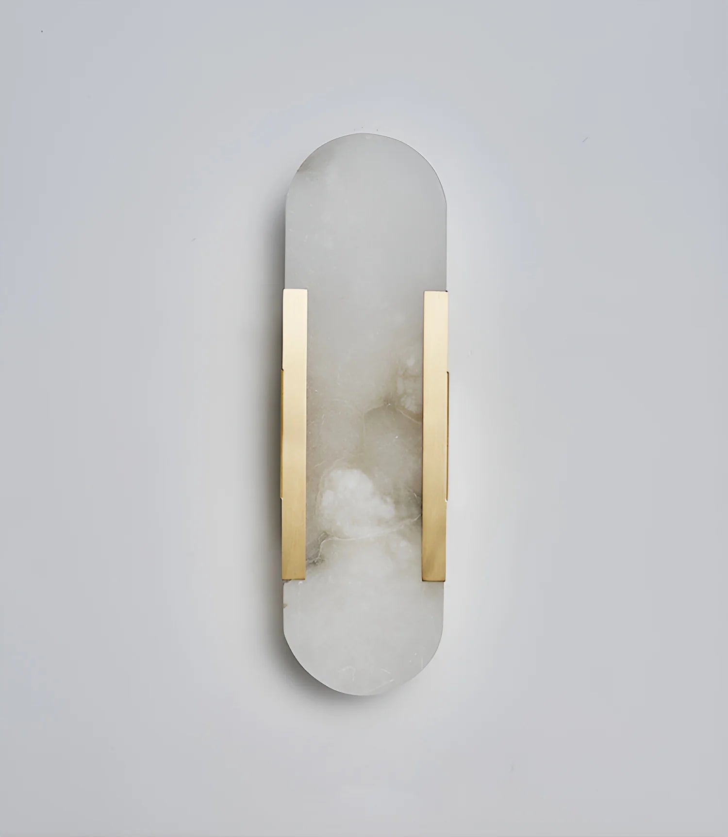 Modern Melange Elongated Alabaster Wall Lamp seamlessly combines natural alabaster and modern metal components to create a sleek and sophisticated addition to any space. Crafted with a focus on geometric form, this lamp exudes elegance while highlighting the natural beauty of stone.
