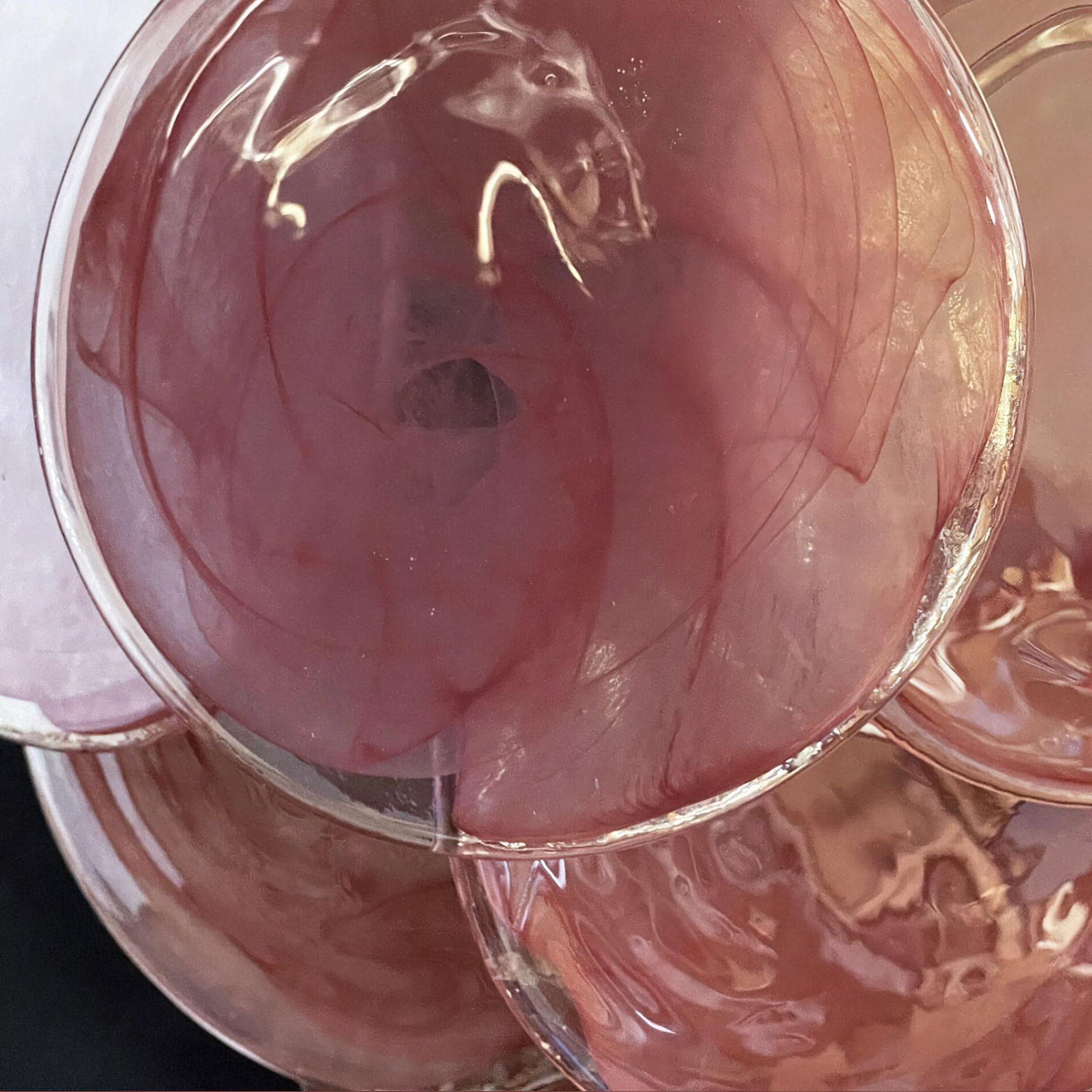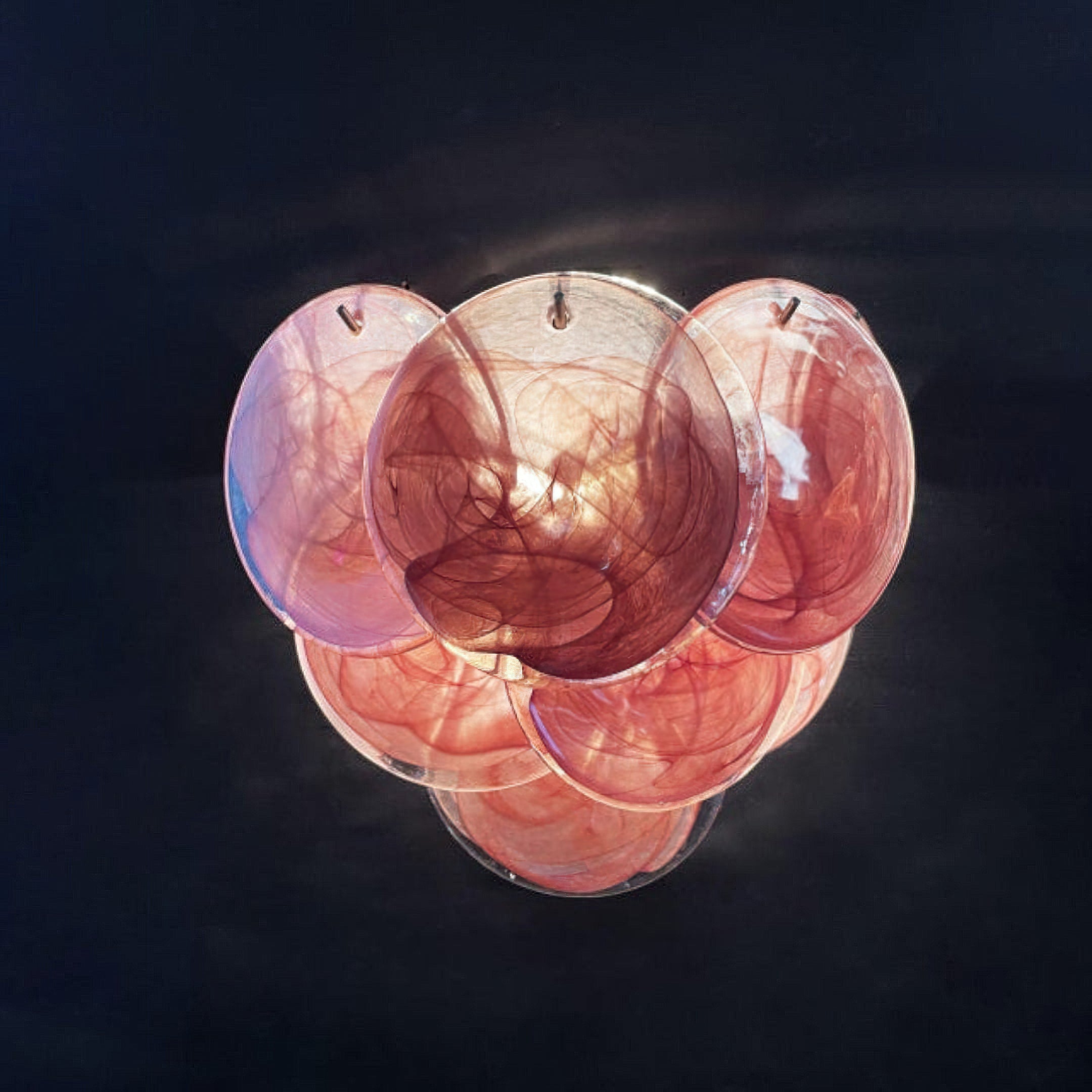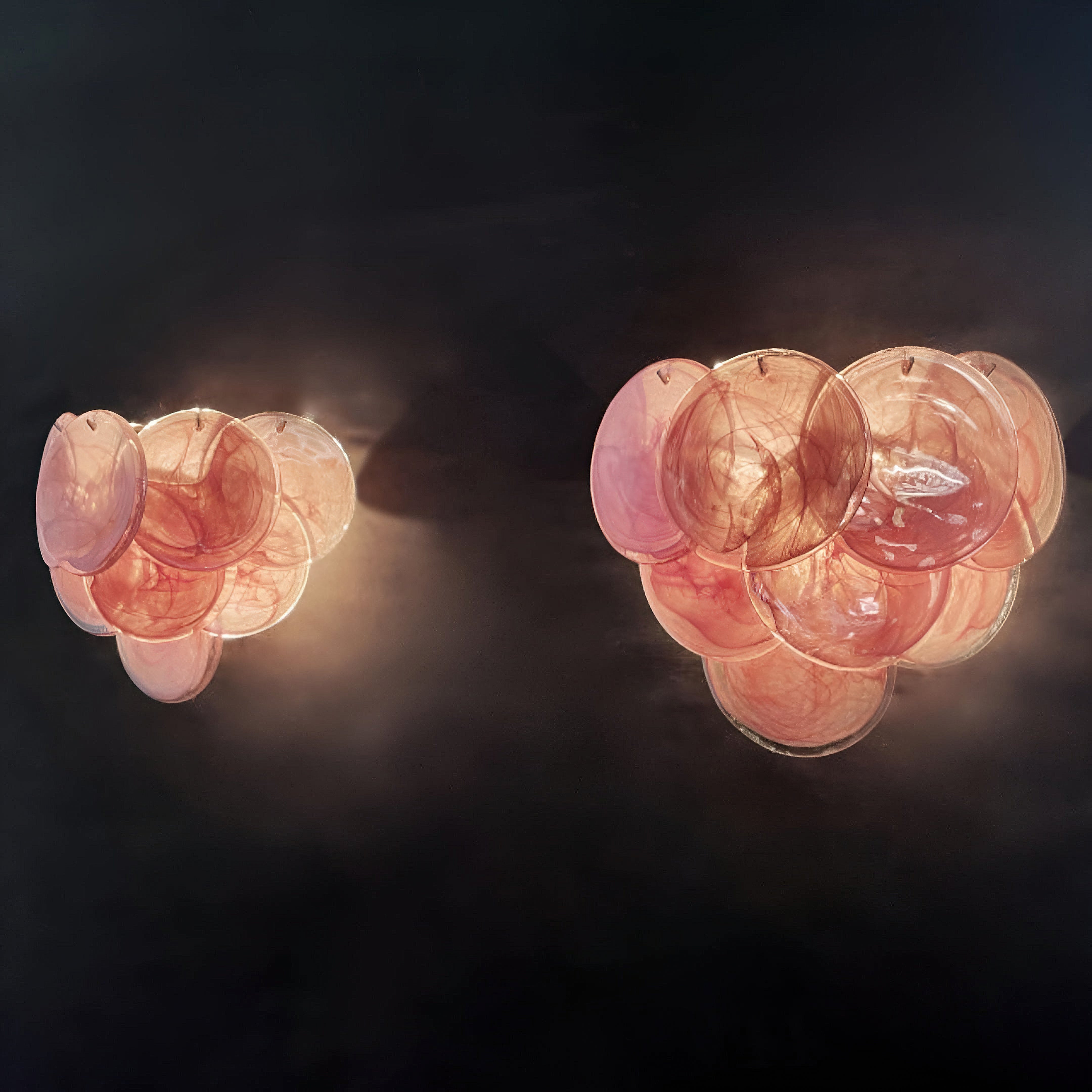 Indulge in the luxurious charm of the Pink Vintage Murano Glass Wall Lamp, adorned with dazzling pink glass discs for each wall light. These discs possess a striking quality of reflecting a multitude of colors, transforming any room into a mesmerizing and radiant masterpiece. Elevate your space with this captivating and luminous lamp.