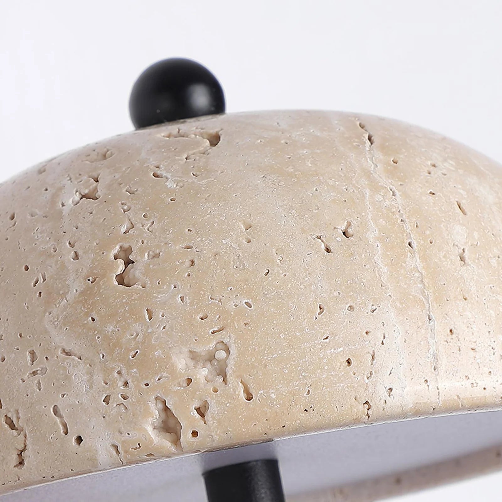 Experience the serenity of nature and artistry with our Reverse Travertine Wall Light, handcrafted from a single, sturdy block of honeycomb calcite, renowned for its cozy warmth. The shade, a stunning display of texture and color, highlights the distinctive grain and tranquil hues of the golden calcite stone, emitting a gentle, ambient glow that enhances any room with its organic radiance. The juxtaposition of the natural, rough stone and the elegant, curved metal arm, completed with a sleek matte black finish, captures a sophisticated aesthetic that embraces the beauty of raw, earthly elements.