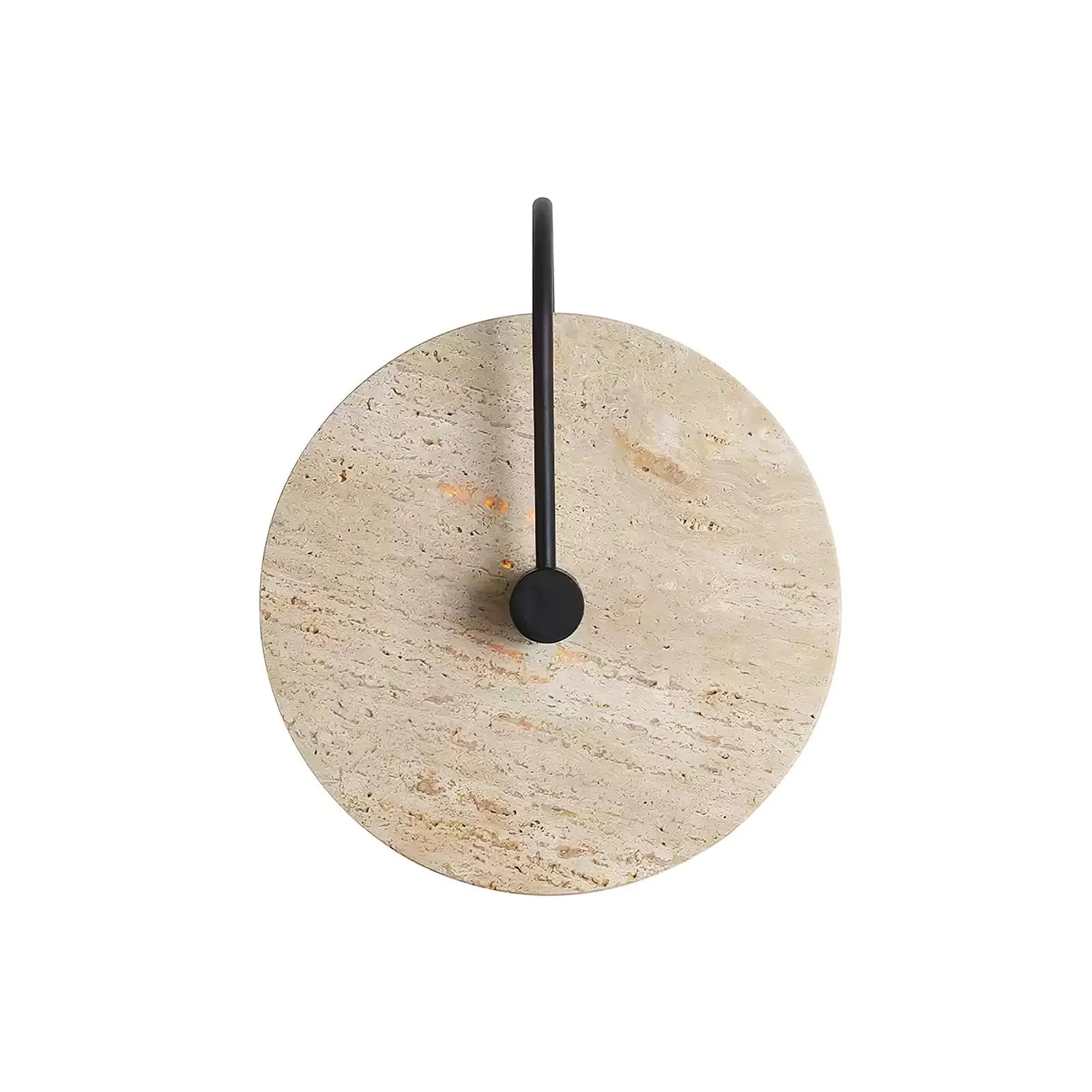 Experience the true masterpiece that is the Round Travertine Wall Lamp, delicately crafted from luxurious travertine stone. Its distinctive circular design and unique snowflake patterns create a captivating and inviting glow. The sleek black arm adds a touch of modern elegance, making it a must-have for those with a refined appreciation for the natural world's splendor.